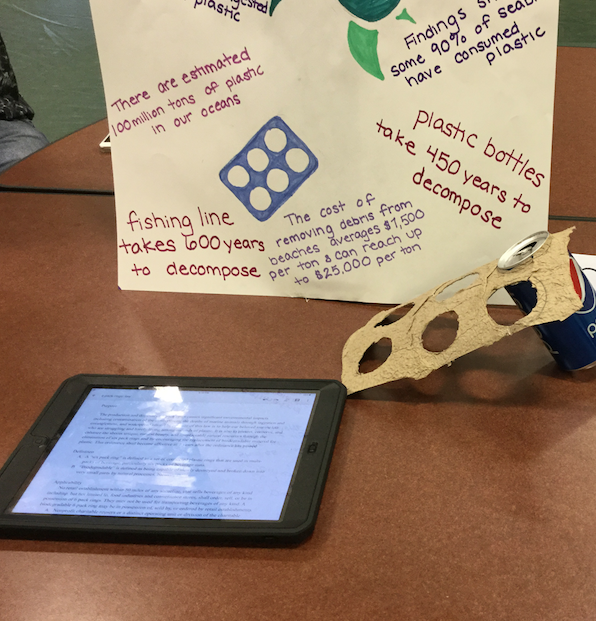 “ How will you change the world?”.  Students improved specific learning targets related to research, critical thinking and literacy to develop their ideas.  They created final projects ranging from a photo gallery to designing a prototype for a biodegradable six pack holder.