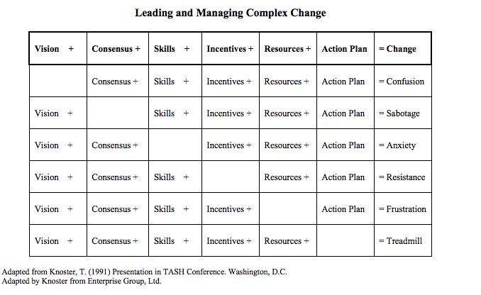 This transition is sometimes difficult and there are rarely any immediate gratifications. It can be draining for the teachers engaging in this work. I am reminded of this chart that has been reimagined many different times from the original work of Knoster in 1991. When there is a feeling of resistance, whether you are feeling it yourself or seeing it as a leader, it is important to be reminded that the benefits of these changes may not seem immediate and the incentive may not be at the forefront. Experiences like the one I had with the algebra teacher helped me and her see the long range incentives. If you or your faculty are feeling resistance, this process can bring about a renewed sense of purpose. I created a framework for working through the process. Please feel free to make a copy of this template with an example and engage in the process yourself.